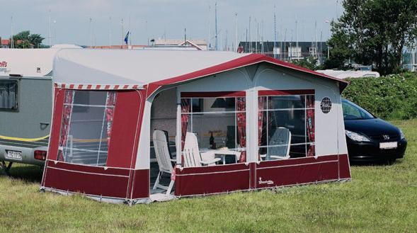 Awning may be completely closed,transformed into a veranda, or into a sun canopy. Standard lightweight alloy frame supplied. The front is removable in two panels and has three windows, one has a roll down cover with mosquito netting. ... Content Retrieval
